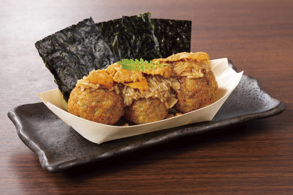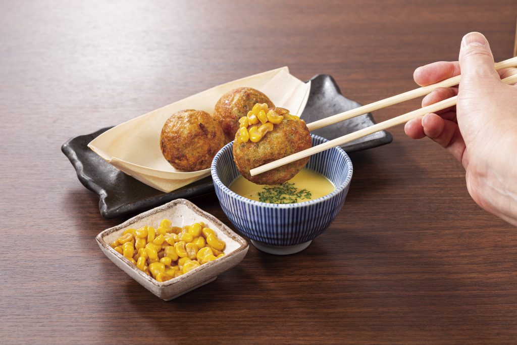 【第2弾】9月9日~9月22日 ウニなめ茸 680円(税抜) ダブルチーズ 580円(税抜) イカ墨オムたこ 580円(税抜) 塩辛ジャガバター 580円(税抜) 北海道コーンポタージュ 580円(税抜)