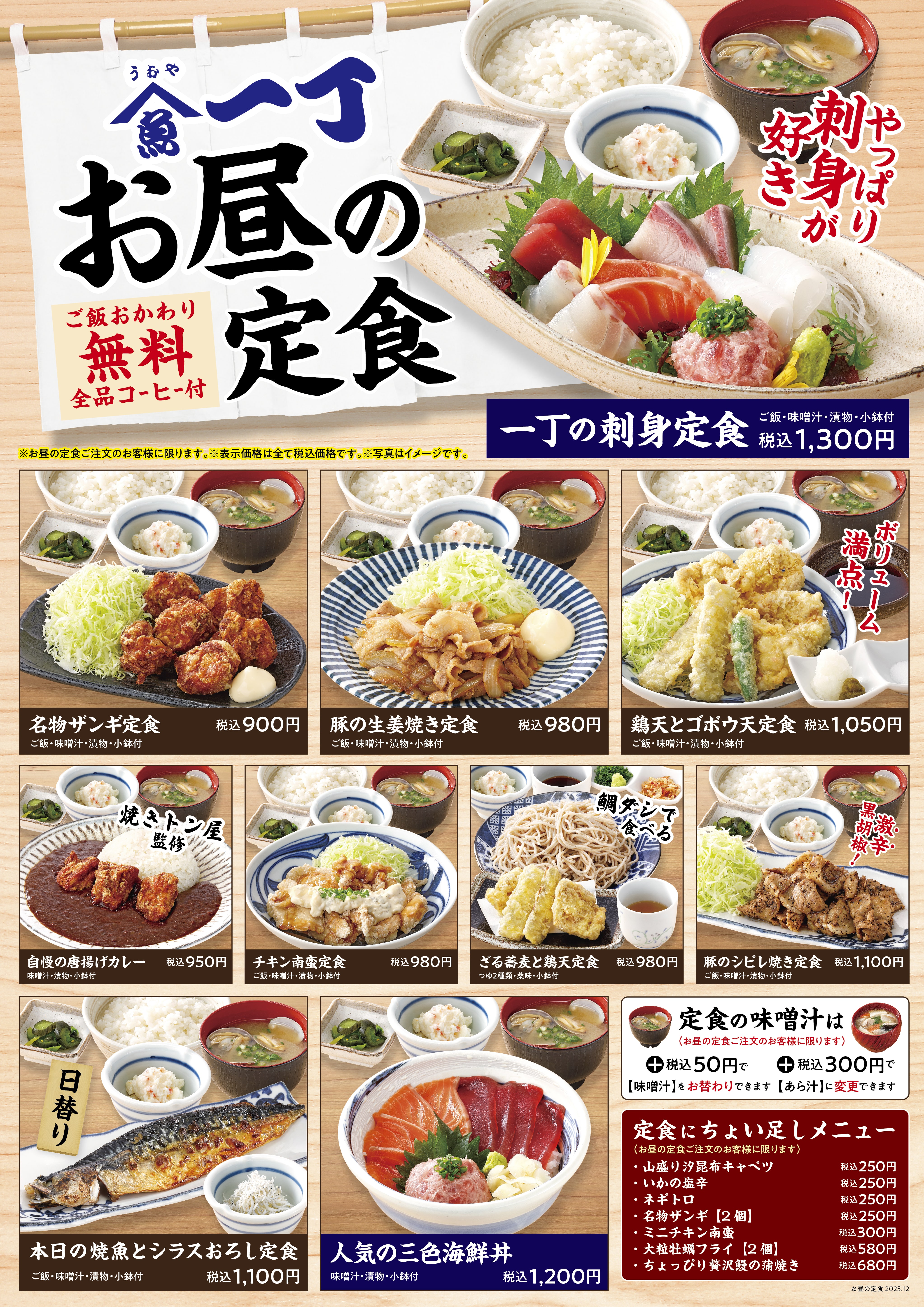 海鮮丼や定食をお得に。一丁のランチをお楽しみ下さい!